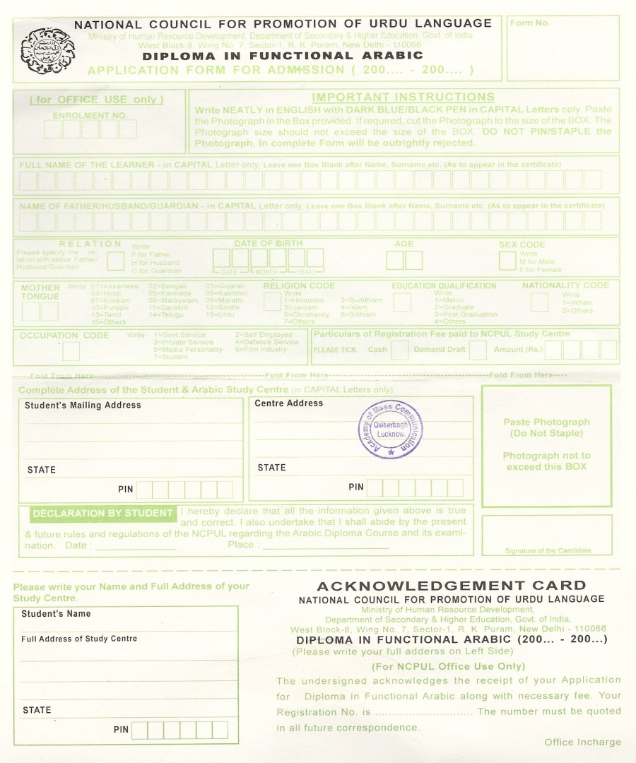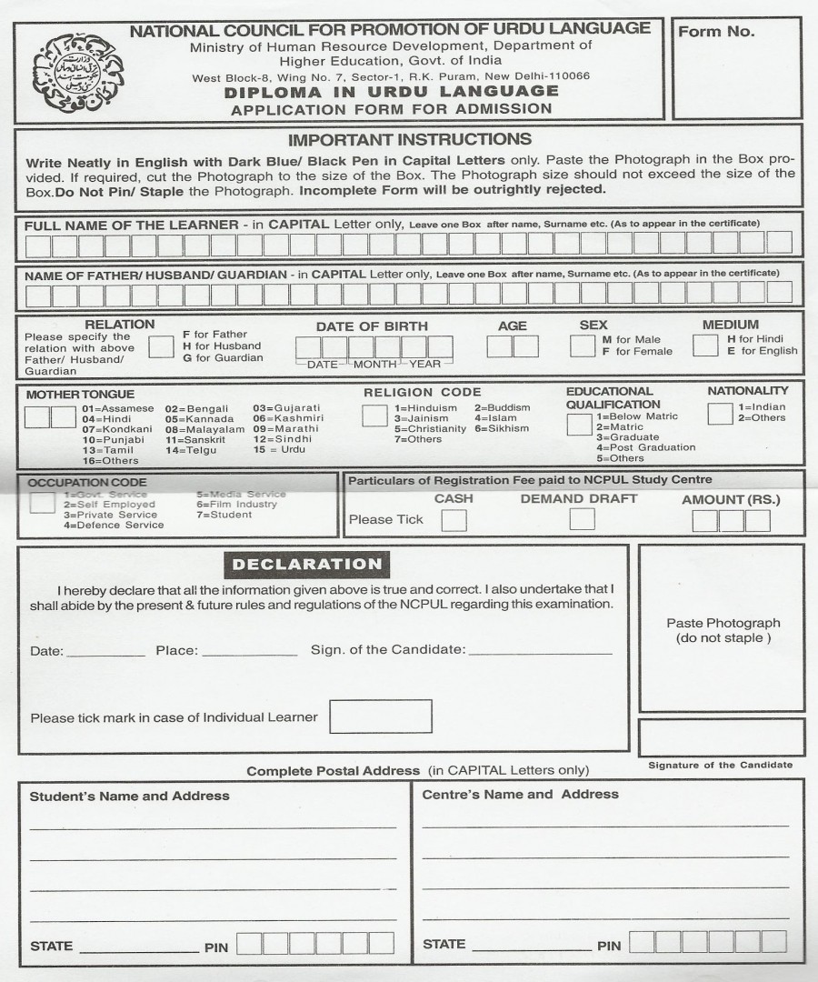Diploma in Urdu Through Distance Education in Hindi / English Medium